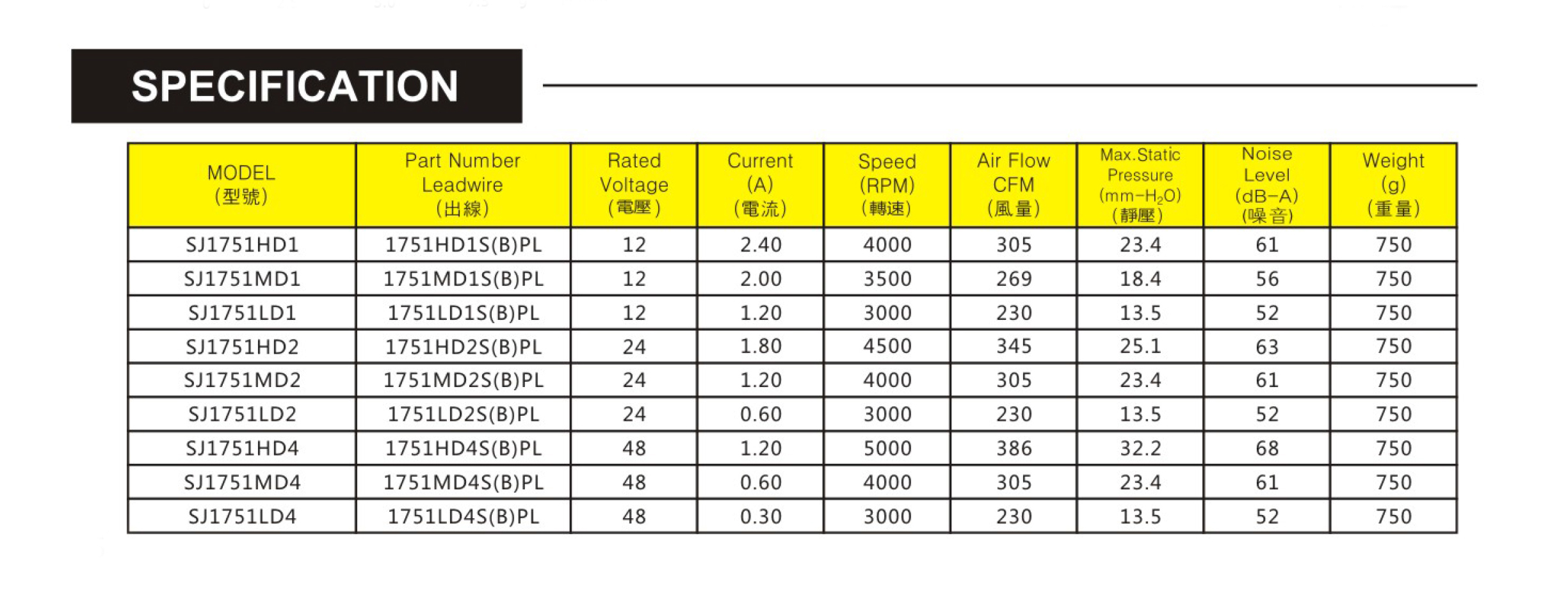 臺灣三巨SJ1751HD2-DC軸流風扇